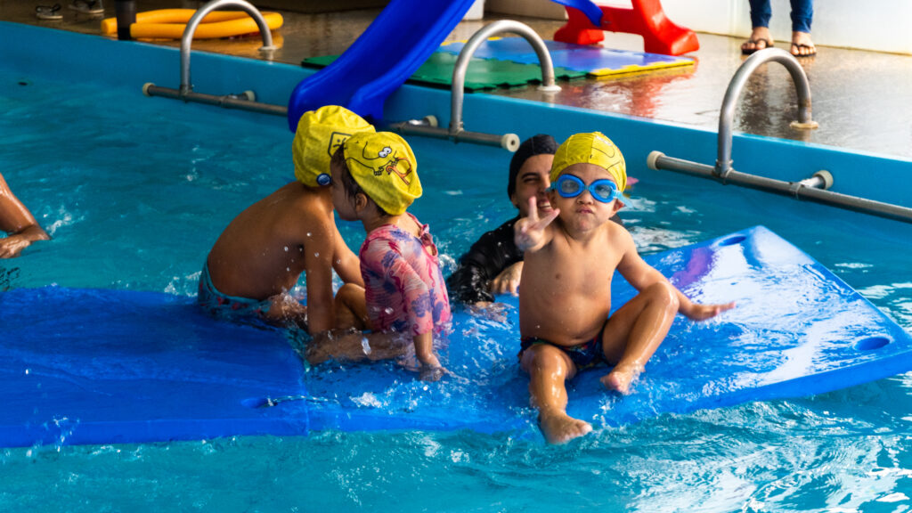 A natação fortalece o sistema imunológico, melhora a coordenação motora, a respiração, a disciplina e a autoconfiança, contribuindo para um desenvolvimento mais saudável.